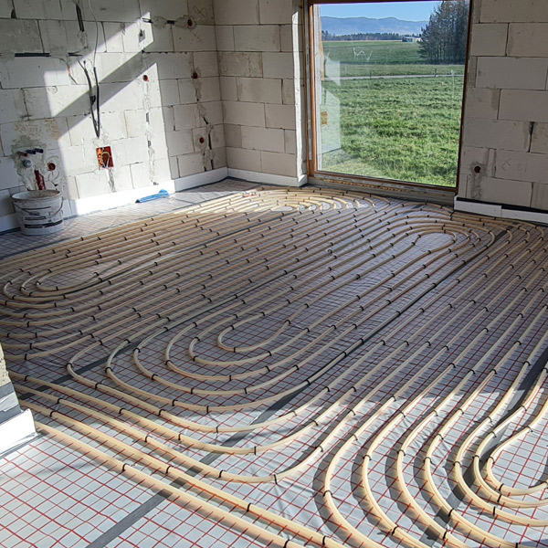 Komfort i oszczędność – ogrzewanie podłogowe pracuje w niskich temperaturach, idealnie współpracuje z pompami ciepła i pozwala znacząco obniżyć rachunki.